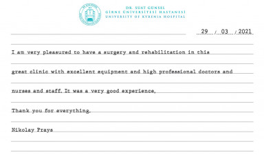 Kaliteli sağlık hizmeti konusunda Girne bölgesindeki büyük açığı kapatan ve ülkemizde başlatılan sağlık turizmi hamlesine büyük katkıda bulunan Dr. Suat Günsel Girne Üniversitesi Hastanesi, üstün donanım ve teknik özellikleri ve deneyimli personeli ile 15 Kasım 2016 tarihinden beridir hizmet vermektedir. Hastanemiz, Girne Üniversitesi yerleşkesi içerisinde, Tıp ve Sağlık Bilimleri Fakülteleri ve öğrenci amfileri ile entegre olacak biçimde ve yaklaşık 15.000 m2 alanda, hasta ve çalışan sağlığı ve güvenliğini ön planda tutacak bir formatta dizayn edilmiştir. Kurulan akıllı hastane otomasyon sistemi ile kesintisiz ortam ve hasta güvenliği, hasta konforu, medikal bilgi paylaşımı ve güvenliği sağlanmakta ve sürekli takip edilmektedir. Butik hastane konseptinde inşa edilen ve toplamda 150 yatak kapasitesine sahip Dr. Suat Günsel Girne Üniversitesi Hastanesi, sahip olduğu yüksek teknolojik donanımı ile birçok alanda adamızdaki en donanımlı ve teknolojik hastane olma özelliğine sahiptir.